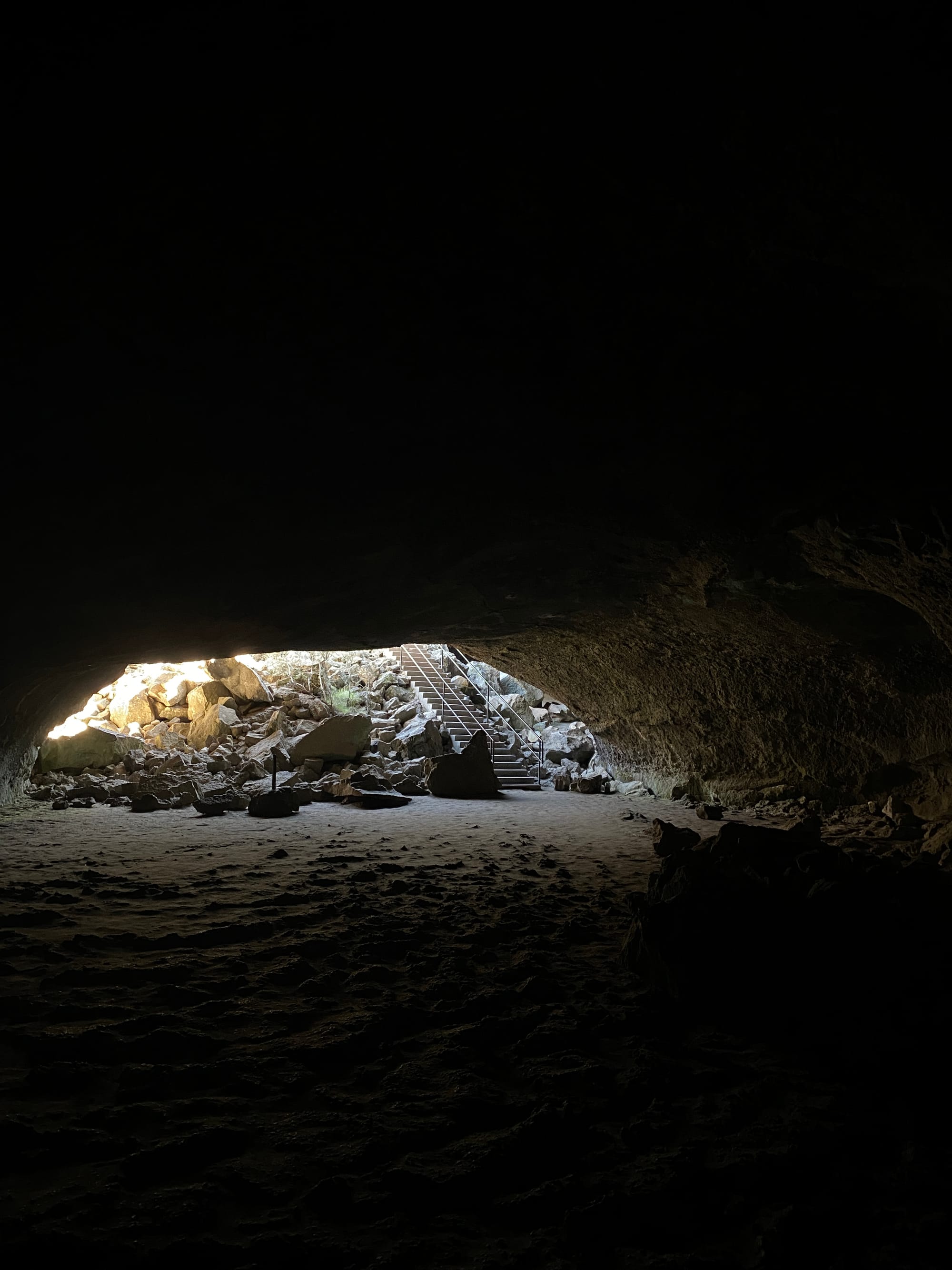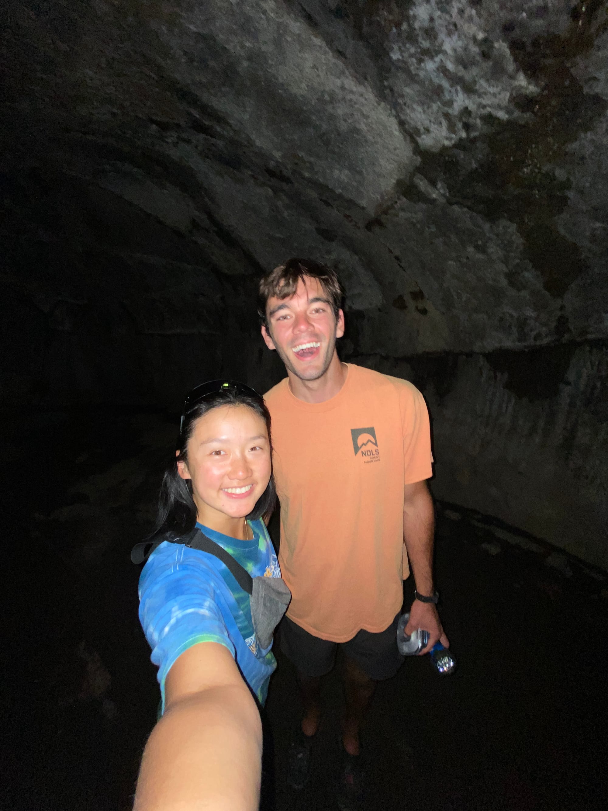 We checked out the lava tubes next. (Lava tubes are formed from underground lava channels that had cooled on the outside while the hot lava on the inside flowed out.) This was one of the most unique geological features we’d seen on the trip and it was a bit spooky 😰 to walk through. But once we had passed a couple people, I wasn’t as scared. The whole tube was about ⅓ of a mile long so we were in there for a while.